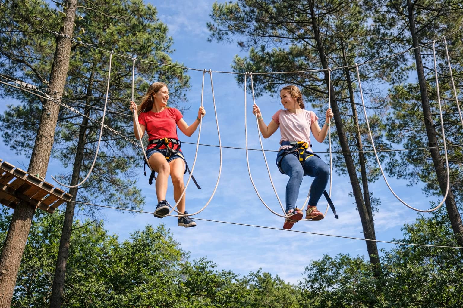On continue ? Ouiiiii ! Alors c’est parti pour une session d’accrobranche au milieu des arbres : ponts suspendus, filets, passerelles et tyroliennes seront au menu : un véritable défi d’équilibre et de courage !